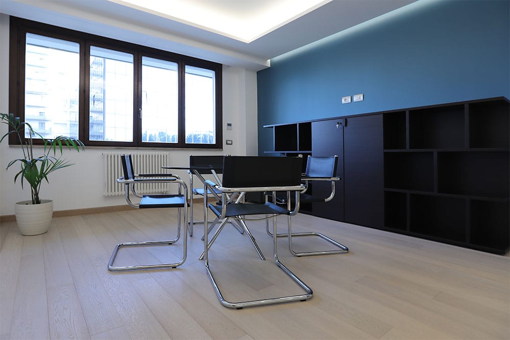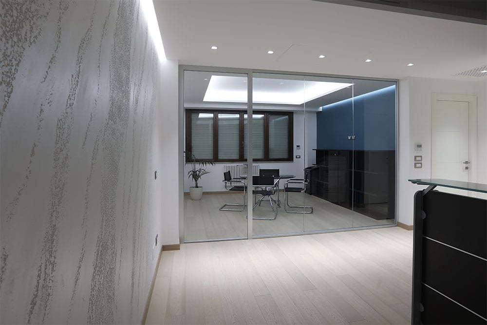 Ristrutturazione totale di un appartamento ad uso ufficio. Abbiamo riprogettato la distribuzione degli spazi interni e degli impianti tecnologici. Il progetto illuminotecnico è stato inserito in una nuova configurazione dei soffitti ribassati. L’impianto di condizionamento canalizzato è totalmente integrato nel controsoffitto. Abbiamo curato la scelta dei materiali, dei colori e degli arredi tecnici coordinati per il rinnovamento d’immagine.