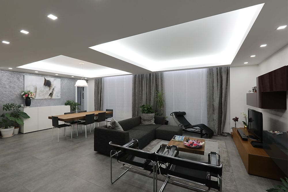Ristrutturazione di un appartamento a Frosinone. Ci siamo occupati della progettazione e realizzazione dei lavori. L’obiettivo è stato quello di rendere moderno l’ambiente, usando colori neutri come il bianco e grigio e fornendo arredi di design. È stato effettuato l’adeguamento dell’impianto elettrico e idraulico. Tra i lavori svolti vi sono la realizzazione del controsoffitto con le due vasche luminose nella zona giorno e sostituzione della pavimentazione, opere di finitura e pittura, ristrutturazione completa del bagno padronale.