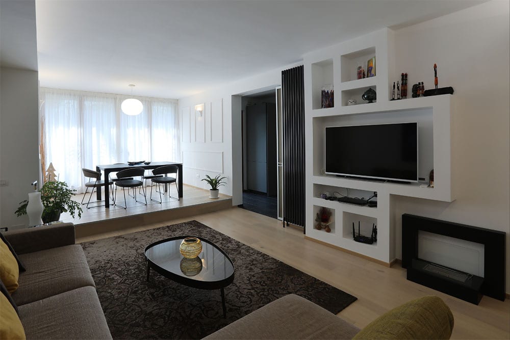 Nel nostro recente progetto a Roma, abbiamo trasformato la vita di una famiglia unendo due appartamenti al piano terra per creare un ambiente spazioso e funzionale. L'open space centrale, con cucina, salone e sala da pranzo, è diventato il fulcro dell'abitazione, collegando le due zone notte distinte per genitori e figlie. Per enfatizzare la continuità tra gli ambienti, abbiamo optato per pavimenti analoghi in parquet che cambiano in gres scuro nella zona cucina. Abbiamo inoltre rivisto la distribuzione degli spazi interni, adeguando gli impianti, realizzando controsoffitti e rinnovando finiture e illuminazione. Grazie all'esperienza di ArkProject, ogni dettaglio è stato curato, dalla progettazione alla realizzazione, garantendo una trasformazione di successo per questa famiglia.