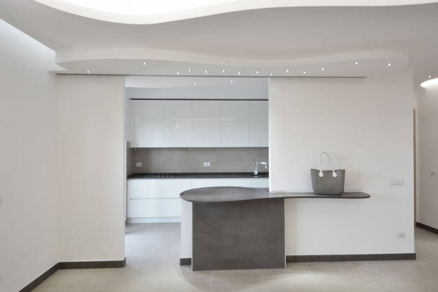 In questo appartamento romano Ark Project ha curato la ristrutturazione completa dell’immobile, dalla nuova distribuzione interna, alla realizzazione di cartongessi e controsoffitti, alla posa di pavimenti e rivestimenti, al rifacimento degli impianti. Il concept progettuale richiama uno spazio fluido e dinamico, nel quale la percezione del movimento si unisce ad un’atmosfera di calma e relax.