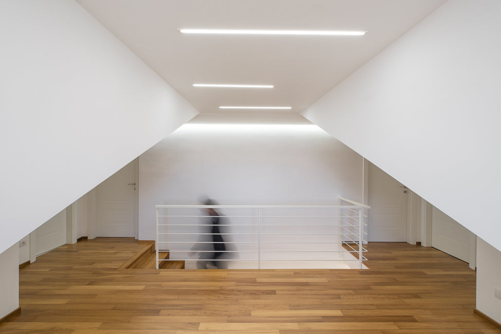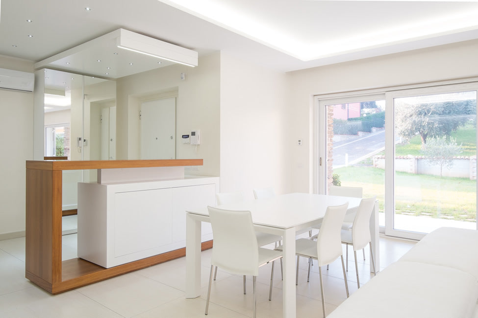 Da una volumetria esistente prende forma l’unità abitativa in oggetto, che si sviluppa su 3 livelli e si configura come la rivisitazione della moderna casa di campagna. All’esterno si mostra infatti come la tipica villa del panorama frusinate, mentre l’interno presenta tutti i caratteri di un’abitazione raffinata e moderna. E’ la natura ad ispirare il concept del progetto: dal suggestivo uliveto che circonda la villa, all’utilizzo di materiali naturali (pietra, marmo e legno) per le finiture degli interni, tutto concorre a creare un continuum tra esterno ed interno, esaltato dal sapiente uso della luce, insieme naturale ed artificiale. Il gres porcellanato, che ripropone come “sfumatura di materia” il materiale naturale, unito alla scelta di porte scorrevoli e finiture di colore chiaro, contribuisce alla percezione di un ambiente elegante e luminoso, moderno e raffinato. L’ambiente del sottotetto viene arricchito da scelte architettoniche di illuminazione e finitura, volte ad ampliare percettivamente lo spazio e a donargli luminosità.
