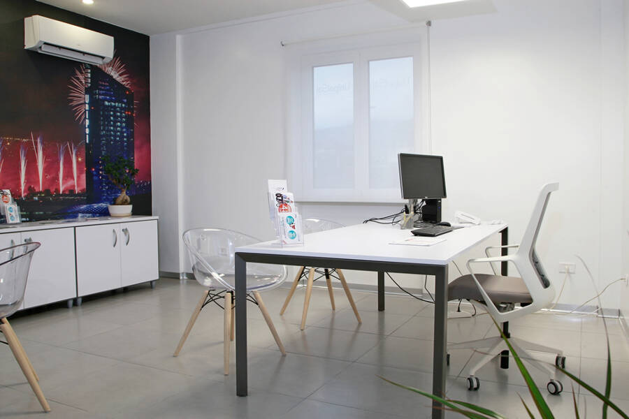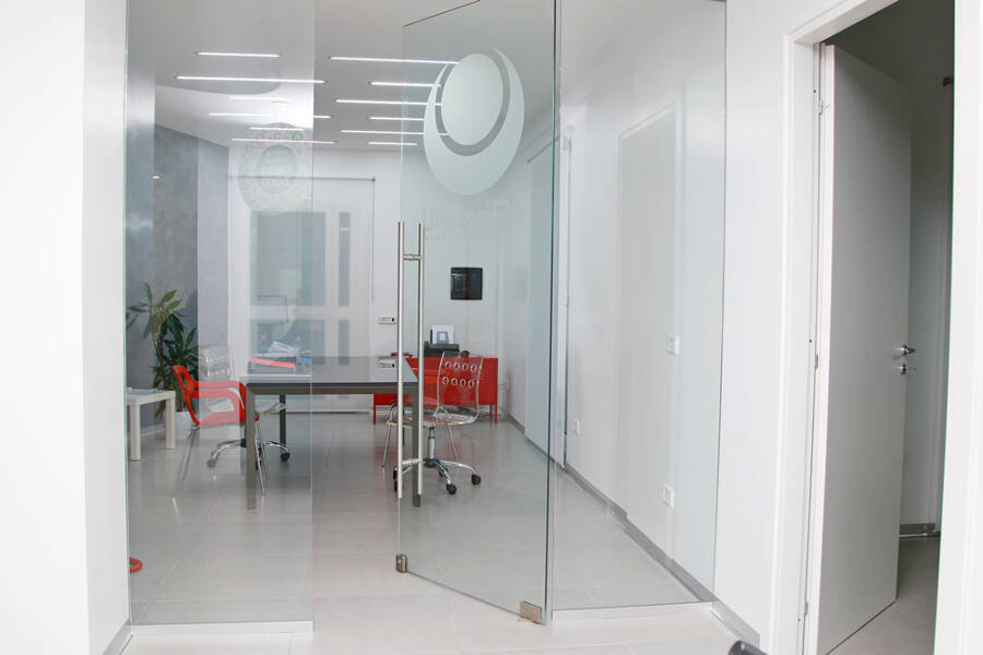 Dopo l’intervento per la sede di Ceprano, la società Uniassifin si è rivolta al team Ark Project anche per la ristrutturazione della sede di Sora. L’ambiente si sviluppa su un unico livello di circa 150 mq, suddiviso in un’area reception e accoglienza, 3 postazioni operative ed un ufficio presidenziale, oltre ad una zona archivio e una sala riunioni. In questa sede si è privilegiato l’uso del colore bianco e grigio chiaro per le pareti e per i pavimenti, abbinato ad un arredamento sui toni del grigio e del trasparente. Occasionalmente, qualche arredo di colore rosso spicca dal contesto attirando l’attenzione del visitatore, come nella sala riunioni e nell’ufficio presidenziale. Lo studio Ark Project ha curato anche qui la componente grafica e la comunicazione visiva del brand.