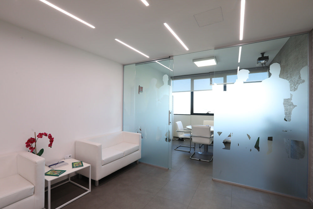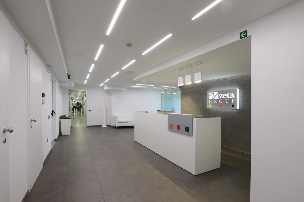 Ristrutturazione di un ufficio situato all’interno del palazzo di piazza Sandro Pertini di Frosinone. Durante l’intervento ci siamo concentrati principalmente nel dare un nuovo aspetto alla hall e al pianerottolo di ingresso. E’ stata progettata la nuova postazione reception, posizionato il nuovo pavimento in linoleum e forniti gli arredi degli uffici (scrivanie, sedie e armadi). Sono stati seguiti i lavori riguardanti l’illuminazione e la pittura. La hall è stata ampliata e messa in evidenza, grazie alla pittura decorativa alle sue spalle e al controsoffitto ribassato. E’ stata creata una zona accoglienza e una sala riunioni delimitata da una parete in vetro su cui è stata applicata una grafica per dare privacy alla stanza. Abbiamo reso più elegante e moderno il pianerottolo inserendo delle canne di bamboo decapate nelle vasiere bianche ed inserito al centro la scritta WELCOME.